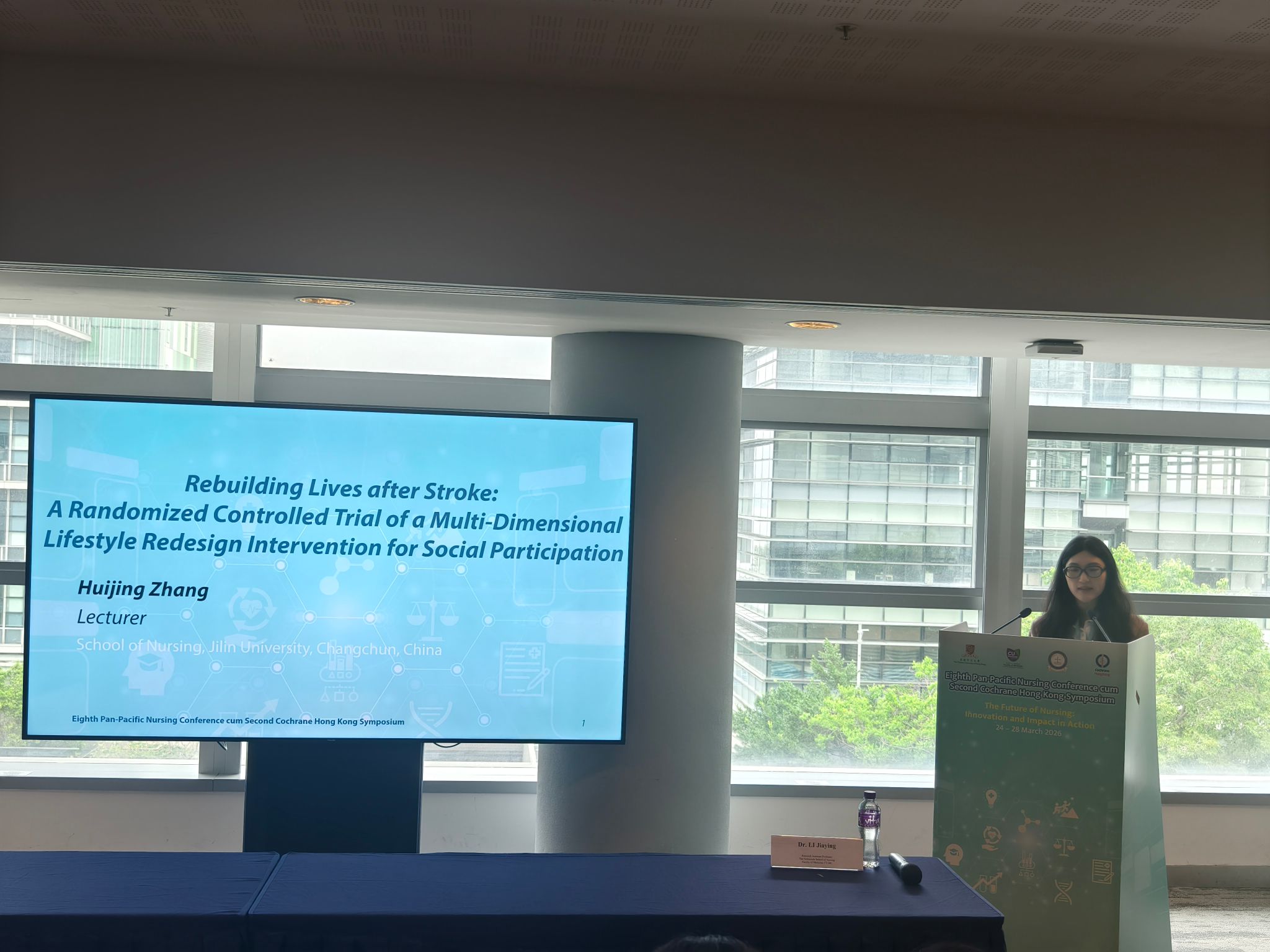 张雪妍副教授、张慧晶教师在分会场针对音乐认知疗法、脑卒中患者社会参与研究进行口头汇报。2名研究生同学也在分会场进行口头发言。