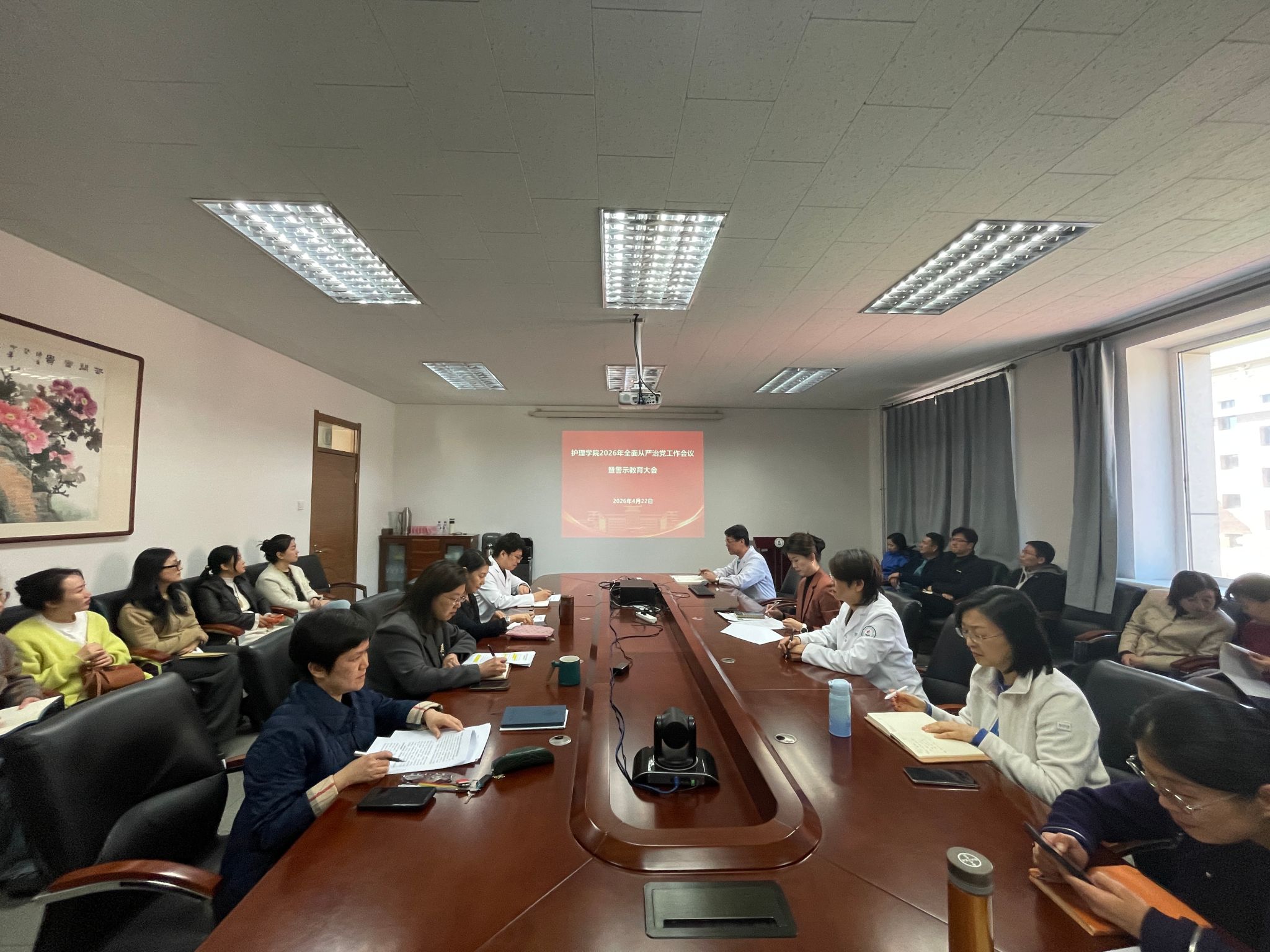 召开2026年全面从严治党工作会议暨警示教育大会。学院领导班子及全体教职工参会,会议由学院党委书记韩月波主持。